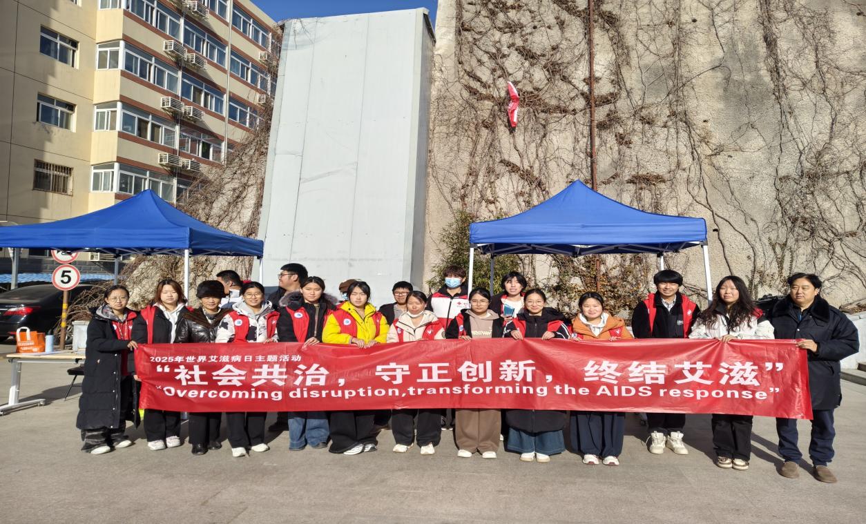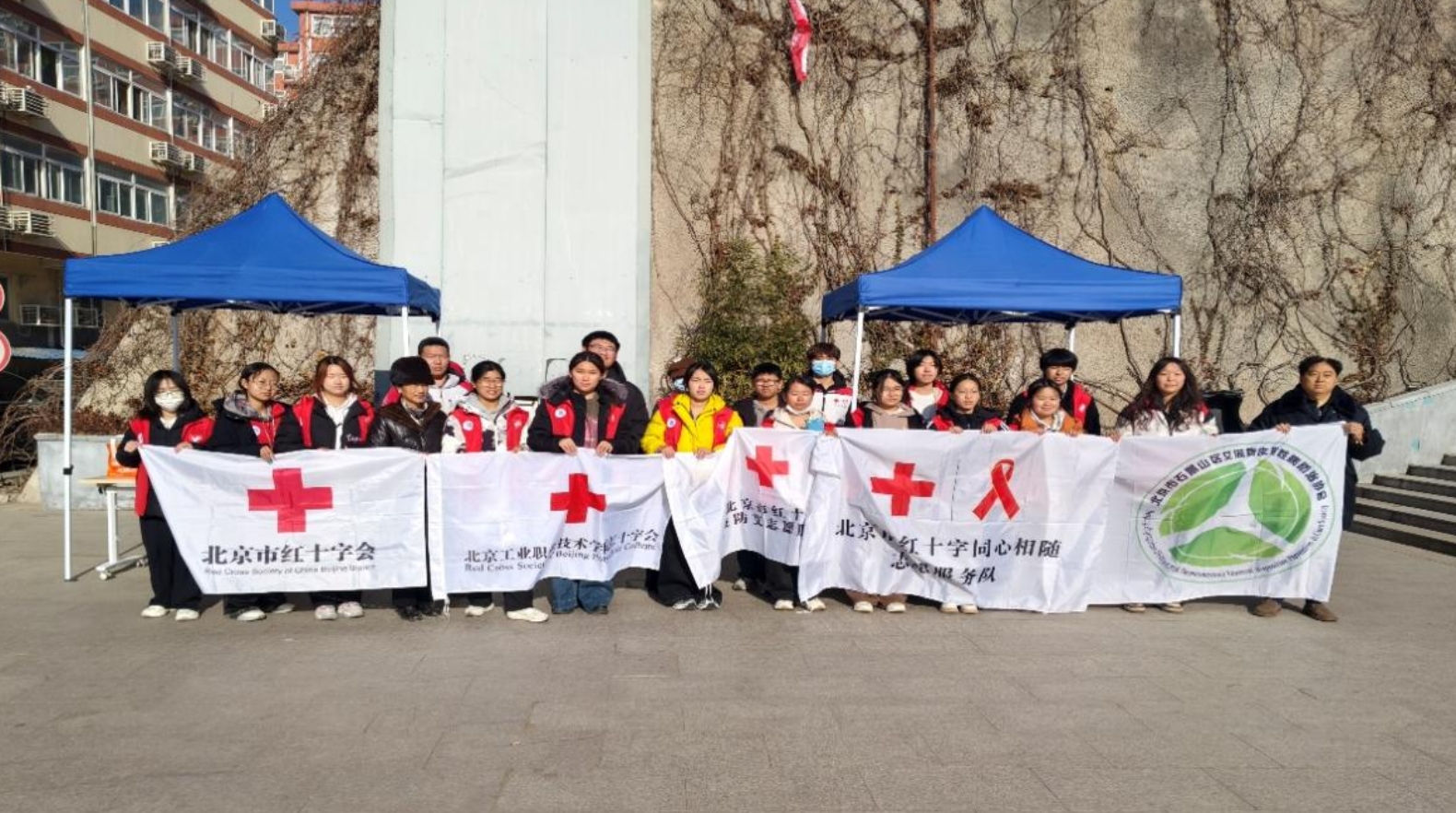 为切实提升同学们的防艾意识,筑牢校园健康防线,在第38个“世界艾滋病日”,我校联合北京市红十字会、北京市红十字同心相随志愿服务队,于食堂广场开展以“社会共治,守正创新,终结艾滋”为主题的防艾宣传系列活动。