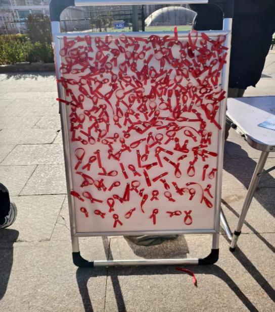活动现场通过多种形式普及防艾知识——发放艾滋病防治宣传单及宣传品、设置咨询台由校红十字会志愿者为同学们讲解艾滋病的传播途径、危害与预防措施。此外,还设置了防艾知识答题、便利贴寄语、红丝带传递等互动环节,帮助同学们在参与中加深对艾滋病相关知识的理解。