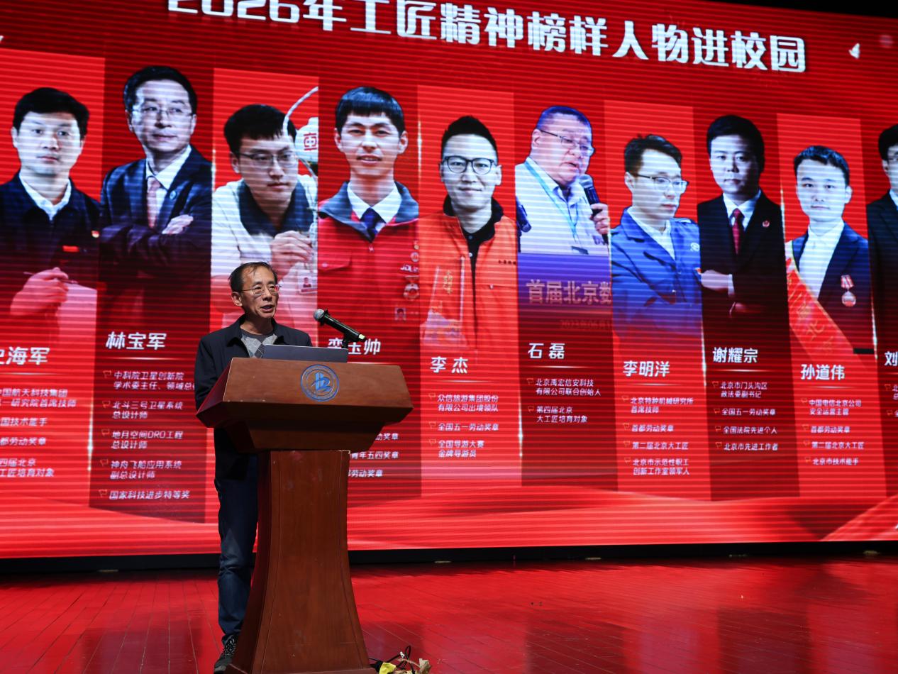 活动中,唐正清介绍了学校2026年“工匠精神榜样人物进校园”活动整体安排。他回顾了2025年活动的丰硕成果,11位各领域榜样人物走进北工院,用实际行动深刻诠释了工匠精神的时代内涵,为师生带来了宝贵的教育资源与精神财富。同时宣布,2026年学校将邀请全国技术能手史海军,北斗三号卫星系统总设计师林宝军,全国劳动模范李子禹,全国五一劳动奖章获得者刘昊、栾玉帅、李杰、谢耀宗,北京大工匠培育对象孙道伟、李明洋、石磊等10位工匠精神榜样人物陆续走进校园,持续深化工匠精神育人实效,让“技能成才、技能报国”的种子在青年学子心中生根发芽。