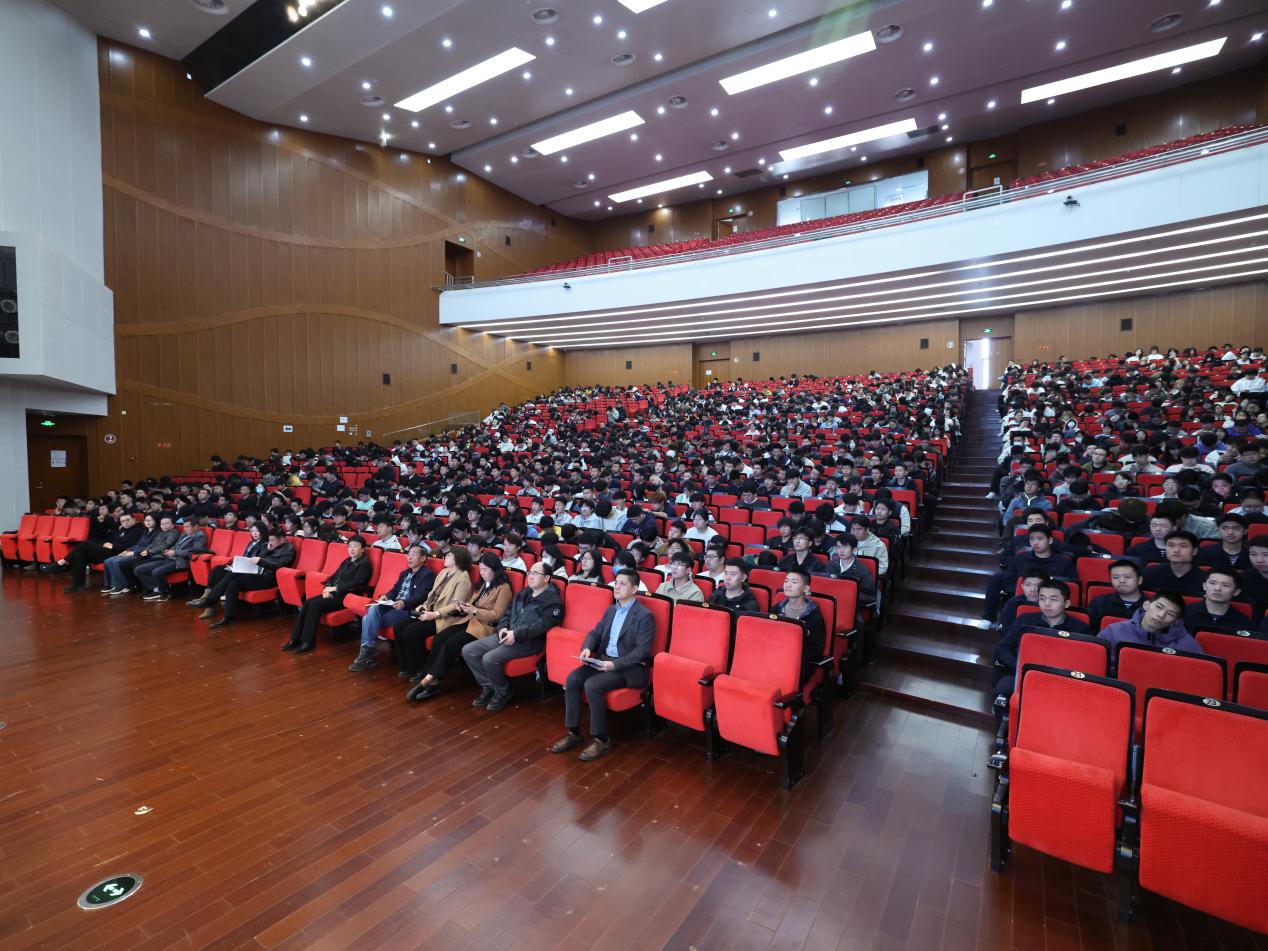 在全场热烈的掌声中,史海军以“执着专注”“争创一流”为主题,结合数十年航天制造经历,带来一堂精彩的工匠精神思政课。他讲述了自己从初入航天制造业时面对铣床操作困境的摸索,到比赛中受挫后潜心钻研,历时十余年深耕数控技能,最终斩获全国数控技能大赛佳绩、获评全国技术能手,完成从一线技工到行业顶尖工匠的蜕变,生动诠释了“执着专注”的坚守与钻研。他还以参与载人航天、探月工程等重大任务为背景,分享了在CZ-2F“神箭”、舱外航天服关键零件研制中与团队攻坚克难、争创一流的故事。最后,他以“功成不必在我,功成必定有我”与师生共勉,提出立足本职、将平凡事做到极致的行动建议。整场宣讲以亲身经历深刻诠释了新时代航天工匠的使命与担当,让现场师生真切感受到大国重器背后一线工匠的实干、勇气与担当。