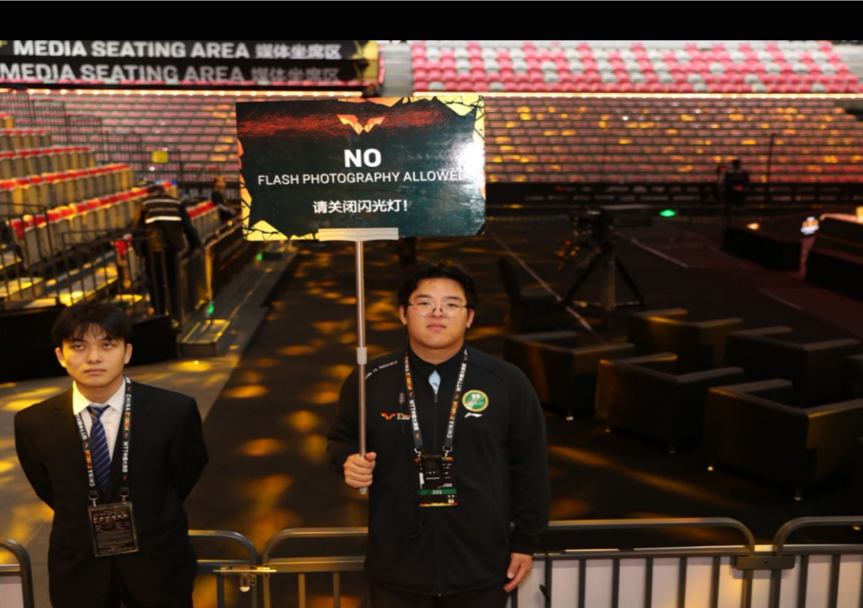 赛事期间,我校志愿者团队根据组委会统一安排,分布在存包处、舞台区及主场馆观众引导等 5 类关键岗位,以 “零事故、零差错、零投诉” 的服务成效,圆满完成各项任务。