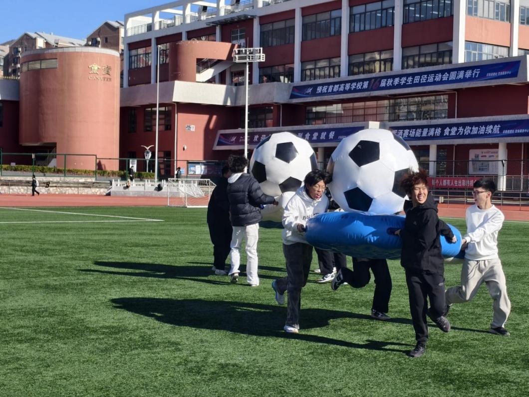 活动中,运动场化身为融合协作与成长的“心理赋能场”。各班级在“俄罗斯方块”“龟兔赛跑”“众星捧月”“狭路相逢勇者胜”等团队项目中展开竞技。这些项目不仅是体能与策略的比拼,更是沟通能力、信任建立与情绪管理的生动课堂。同学们在协作中增进理解,在挑战中实现自我突破,展现出积极进取、团结互助的精神风貌。