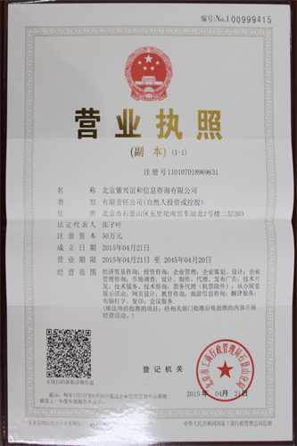 | 北京紫兴谊和信息咨询有限公司营业执照副本 |