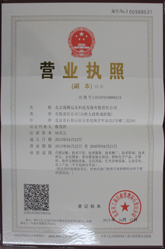 | 北京逸腾远见科技发展有限责任公司营业执照副本 |