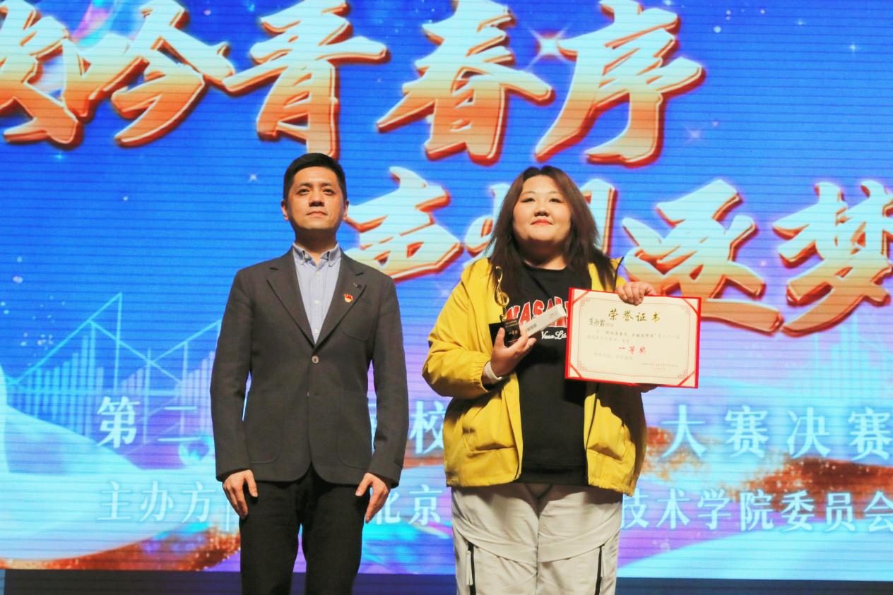校团委副书记赵萌为获得三等奖的选手颁奖