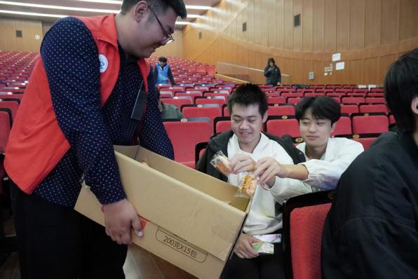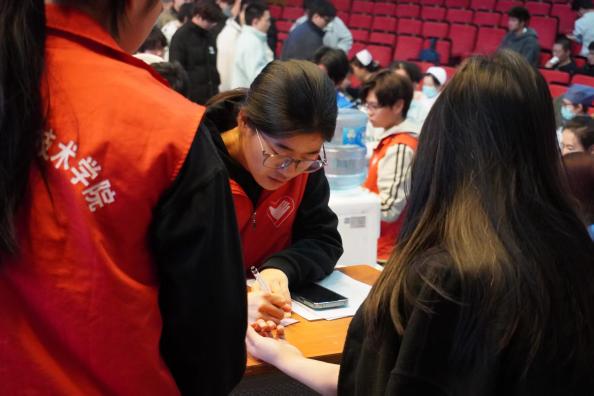 献血现场的井然有序,离不开志愿者们的默默奉献与暖心陪伴。在校团委的精心组织下,志愿服务团队全程守护,为献血学子提供贴心引导与服务。现场科学划分了登记、体检、献血、休息及领证等功能区域,确保了各环节紧密衔接,流程高效顺畅。
