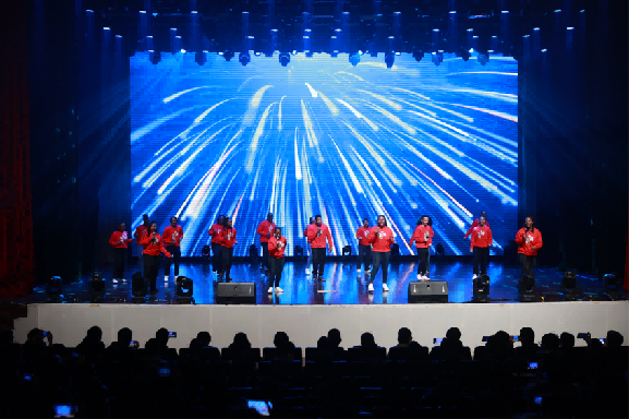 尾声环节,校艺术团携手全体演员带来歌曲串烧《青春正现在》、《我和我的祖国》,唱出了北工院人奋进新时代、筑梦新征程的豪情壮志。现场灯光璀璨,掌声、欢呼声此起彼伏,汇聚成一片欢乐的海洋。