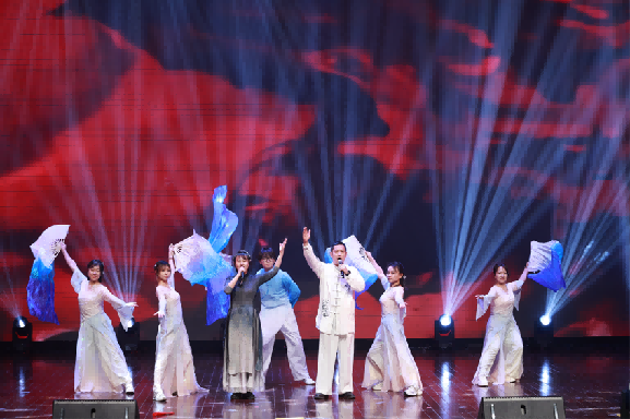 第一篇章“初心如磐·砥砺前行”中,师生们通过多样的舞台呈现,深情回望了峥嵘岁月与奋斗征程。节目以激昂的歌声传递信仰力量,以动人的舞姿诠释初心赤诚,更以真挚的吟诵与演绎重温青春足迹、展现奋斗热血。在一幕幕承载着记忆与情感的演出中,篇章生动勾勒出岁月积淀下的精神传承与时代回响。