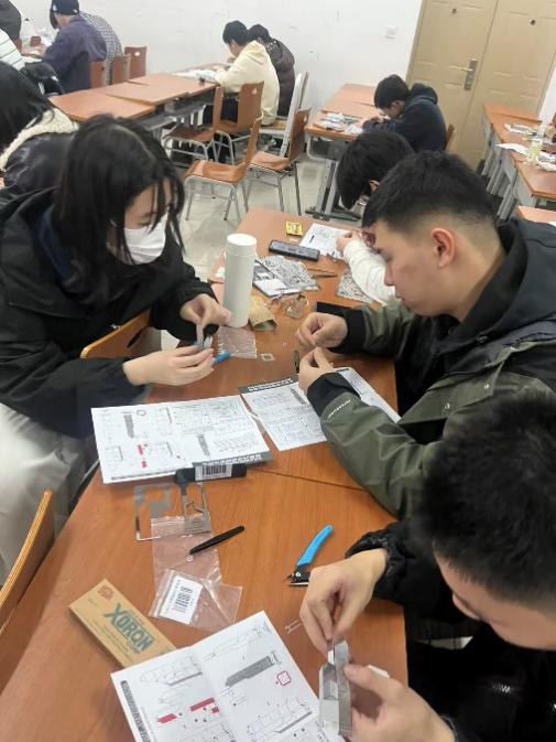 学院在晚自习期间组织开展高精度金属3D立体拼图体验活动。本次活动采用精密金属蚀刻片,无需胶水与额外裁剪,40余名同学们通过弯折、卡扣、拼接等操作,即可完成细节精致的建筑模型。
