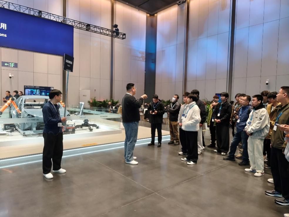 学院组织学生代表赴西门子科技大会开展参观学习活动。大会现场集中展示了智能制造、数字化工厂及绿色低碳等领域的前沿技术与解决方案。在工作人员引导下,同学们近距离观摩了工业机器人、AI驱动的自动化产线以及数字孪生平台等创新成果,深入了解当前工业数字化转型的最新趋势。参观过程中,大家就技术原理、应用场景及行业人才需求与企业工程师进行了交流互动。