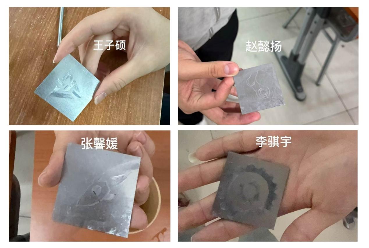 为持续优化晚自习学习形式,将专业学习与动手实践深度融合,学院组织学生利用晚自习时间开展电解蚀刻实践活动。在老师的指导下,30余名同学运用电化学原理,亲手在钢板上设计并蚀刻出精美图案。从电路连接、溶液配比到图案绘制、蚀刻控制,每一个环节都考验着同学们的细心与耐心。更在严谨细致的工艺制作中培养了精益求精的工匠精神,为学风建设注入了专业实践的新活力。