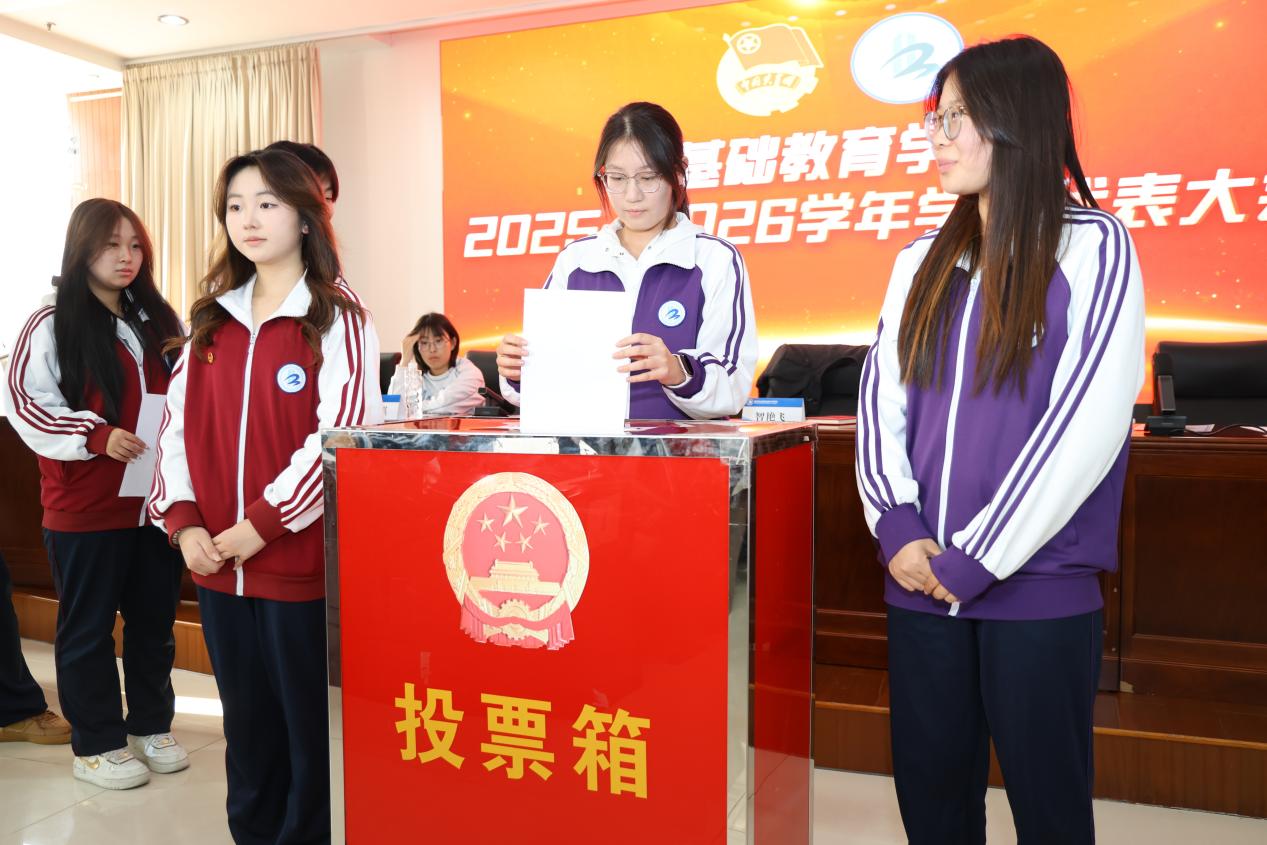 竞选演说结束后,大会进入民主投票环节。基础教育学院学生代表们秉持 “公平、公正、公开” 的原则,认真审阅每位候选人的情况,郑重地在选票上投下自己的一票。投票过程秩序井然,充分体现了学生代表的责任意识,确保了新一届团学骨干选举结果的科学性与代表性。