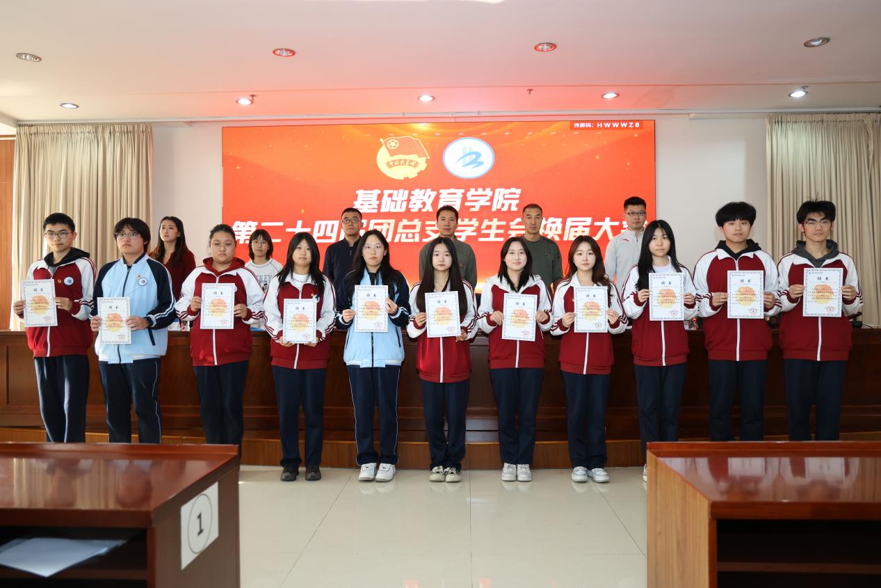 2025年11月13日1时,基础教育学院2025-2026年学生代表大会暨第二十四届团总支学生会换届大会在匠心楼报告厅成功举办。会议由25级贯通辅导员赵宏维主持,23届学生会全体成员,及基础教育学院学生代表参加。