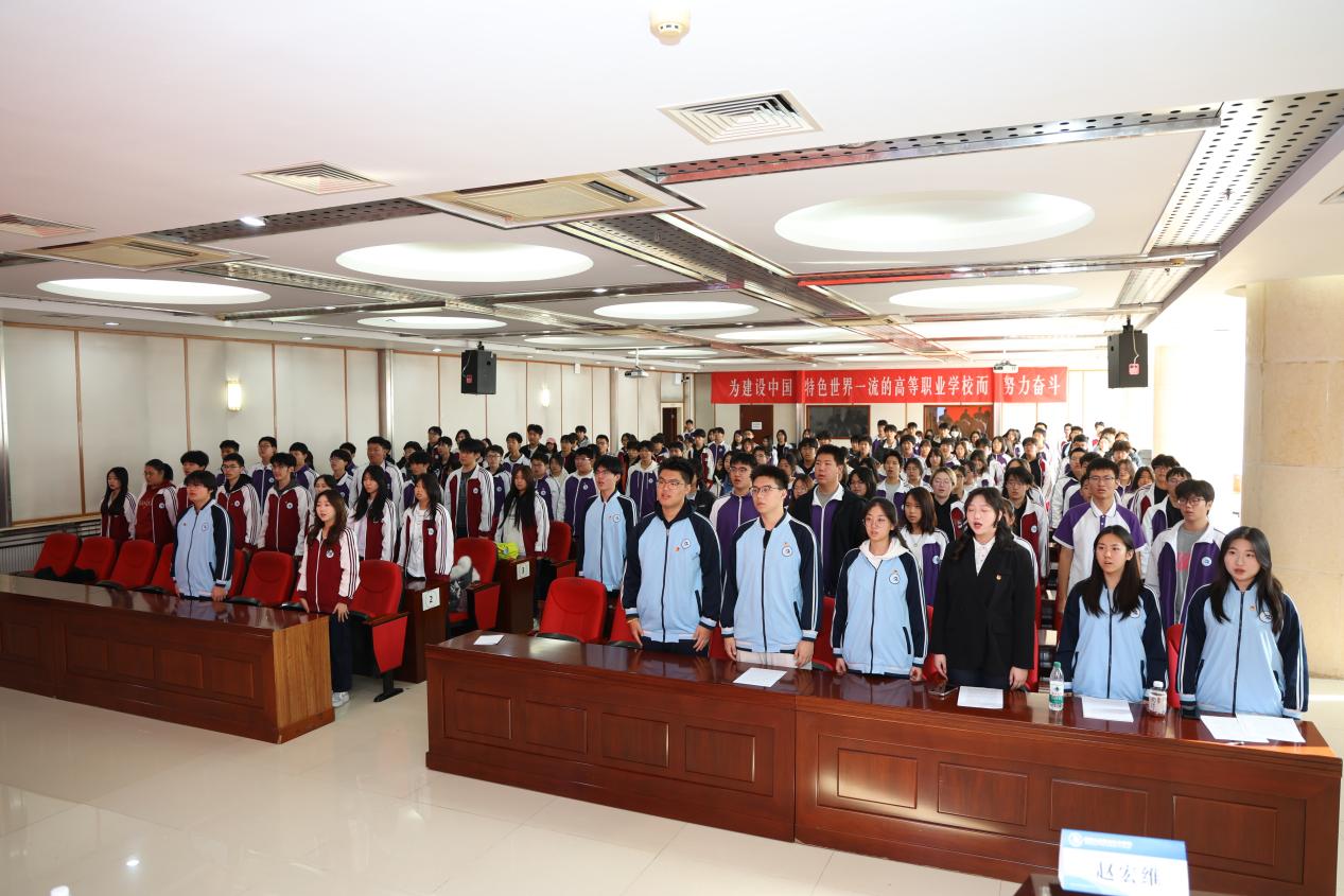 大会伊始,主持人赵宏维宣布会议正式开始,并向全体参会人员介绍到场领导,全体奏唱国歌。随后,第二十三届团总支学生会代表韩钰彤、团总支副书记赵祎阳分别作 2024-2025 学年团总支学生会工作总结报告。从活动开展、基础团务、组织建设等多个维度,全面梳理了上一学年团学工作的亮点成果与实践经验,报告内容详实、数据具体,充分展现了第二十三届团学骨干的责任担当与实干精神。