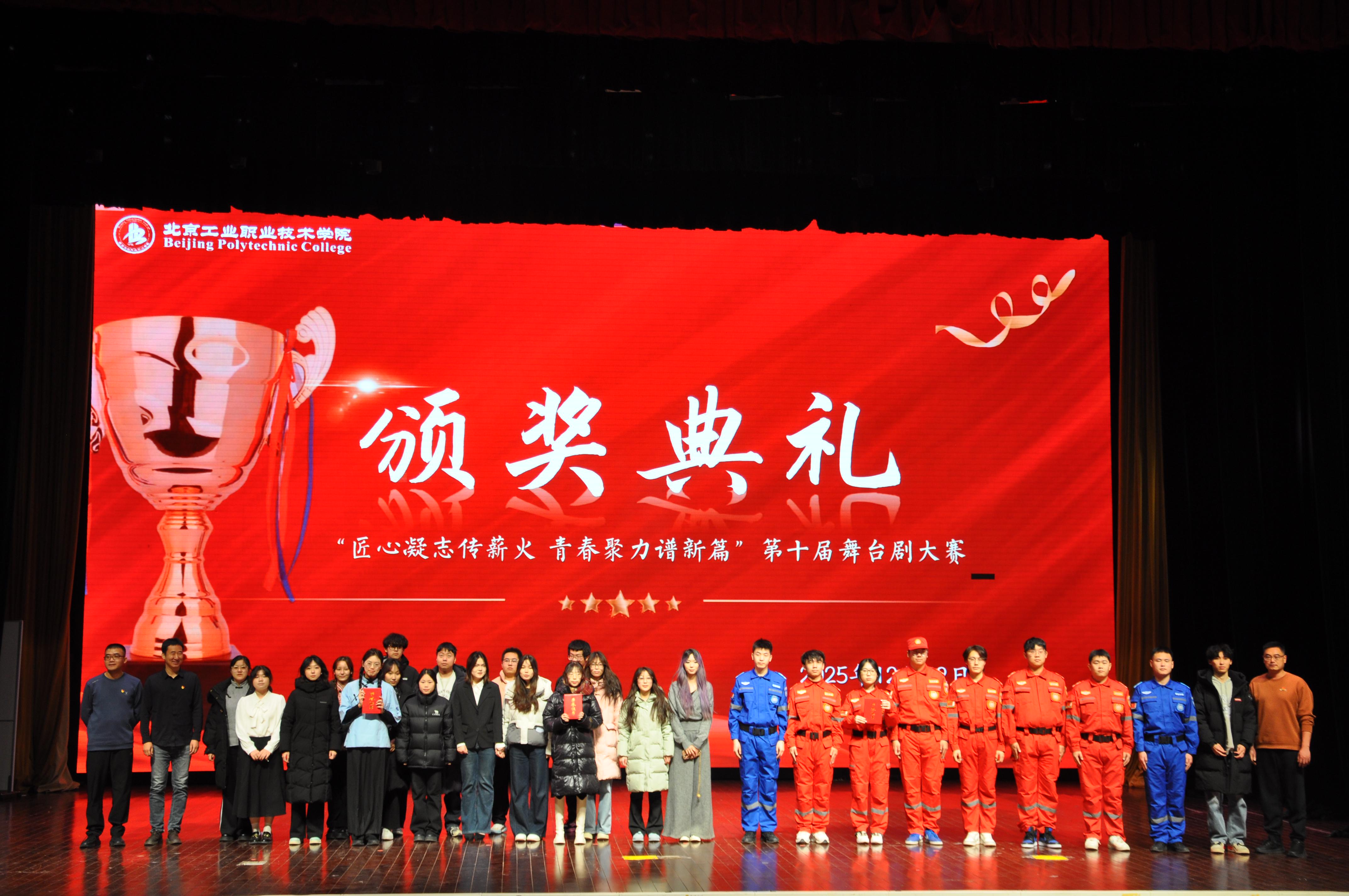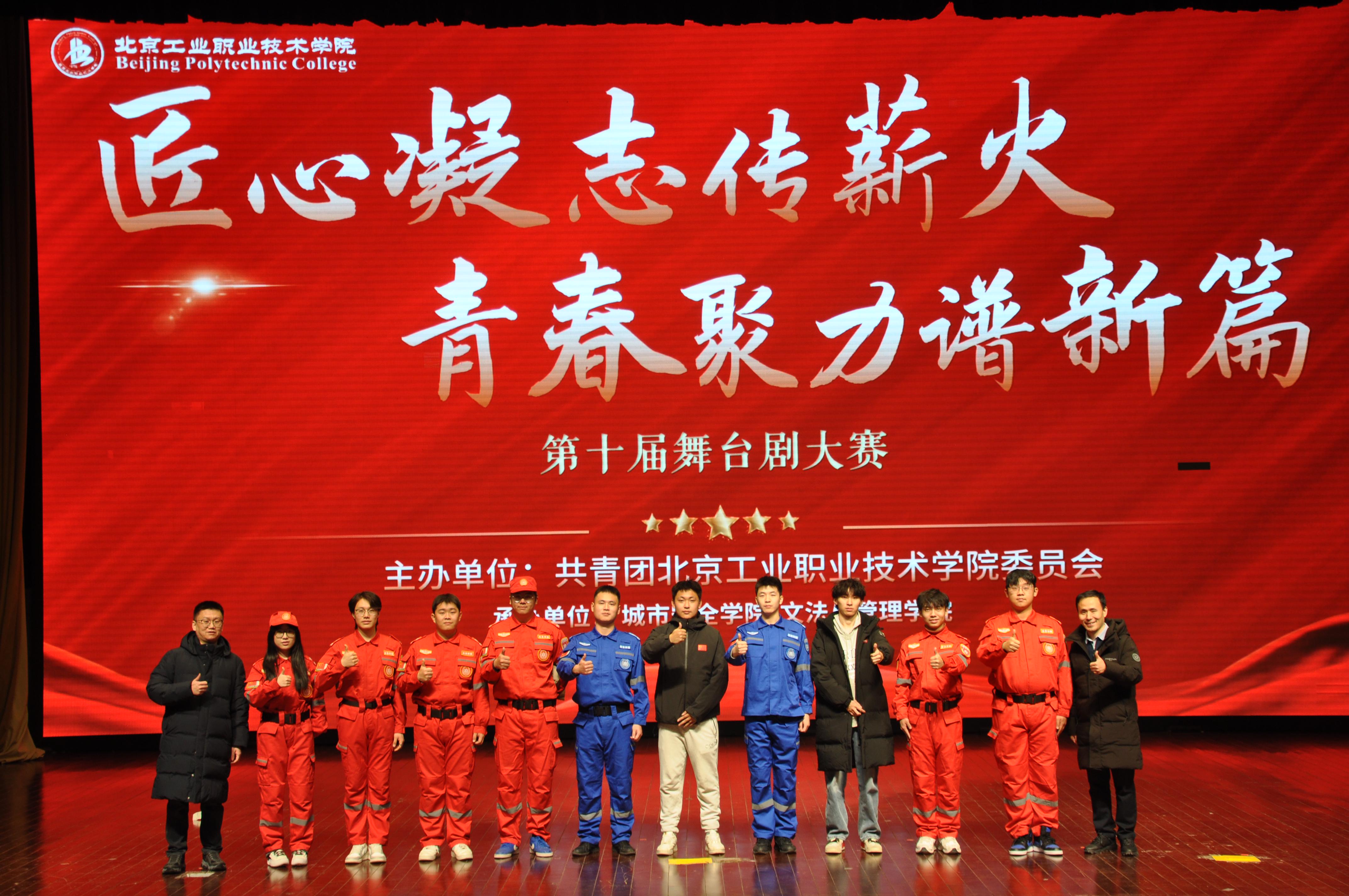为厚植校园文化底蕴,传承工匠精神,凝聚青春奋进力量,2025 年12月22日晚18点30分,由共青团北京工业职业技术学院委员会主办,文法与管理学院、城市安全学院联合承办的第十届舞台剧大赛在学校礼堂隆重举行。学工处长、校团委书记郑兴及各学院党总支副书记、各学院师生代表参加活动,共同见证这场融合思想性与艺术性的文化活动。