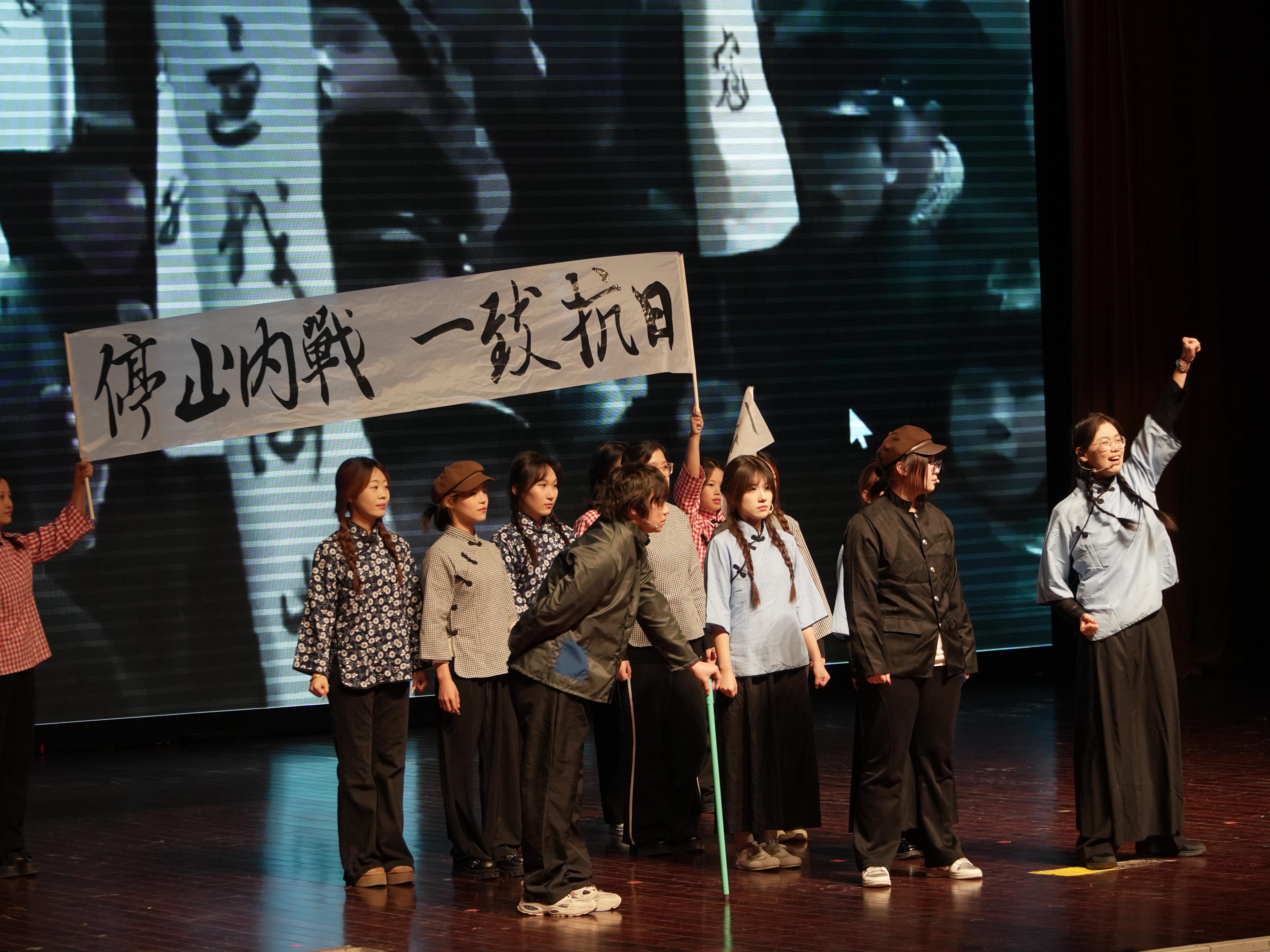 在本次大赛中,我校各学院及学生科技社团分别组建的11支参赛队伍同台竞技,每个作品在指导老师的悉心打磨下,以精湛演技和深刻立意,为现场观众呈现了兼具思想深度与艺术感染力的舞台佳作。《巴黎和会》《课间十分钟》《平型关战斗模范连・英雄归来》等剧目各具特色,或回望历史、或聚焦当下、畅想未来。